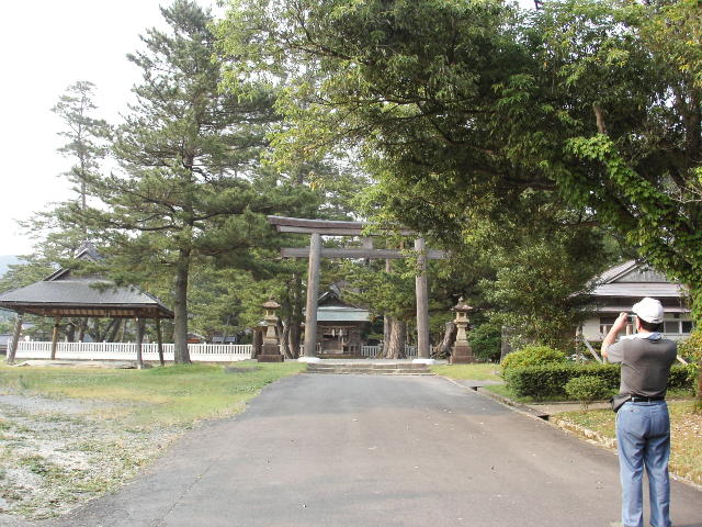 農耕と航海安全の神様 神社の造りは隠岐造と言うそうです 右側の人は同行者です
